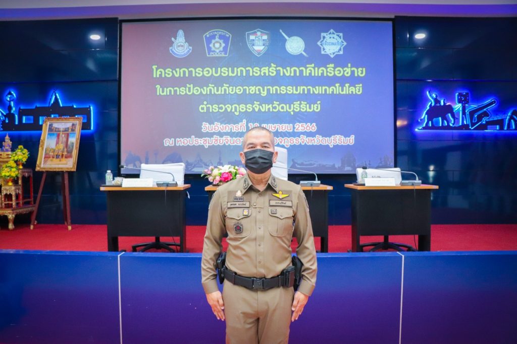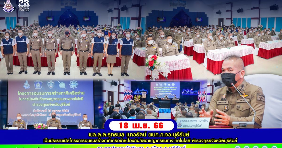 วันที่ (18 เมษายน 2566) เวลา 09.00 น. พล.ต.ต.รุทธพล เนาวรัตน์ ผบก.ภ.จว.บุรีรัมย์ พร้อมด้วย พ.ต.อ.บัญชา ศรีอนันต์ ผกก.(สอบสวน) ภ.จว.บุรีรัมย์,พ.ต.อ.ทรงพล วันทาวงษ์ ผกก.(สอบสวน) ภ.จว.บุรีรัมย์,ผกก.สืบสวน ภ.จว.บุรีรัมย์, หน.สภ.ในสังกัด ภ.จว.บุรีรัมย์ และเจ้าหน้าที่ที่เกี่ยวข้อง ร่วมพิธีเปิดโครงการอบรมสร้างภาคีเครือข่ายป้องกันภัยอาชญากรรมทางเทคโนโลยี ตำรวจภูธรจังหวัดบุรีรัมย์ ณ หอประชุมชัยจินดา อ.เมือง จ.บุรีรัมย์