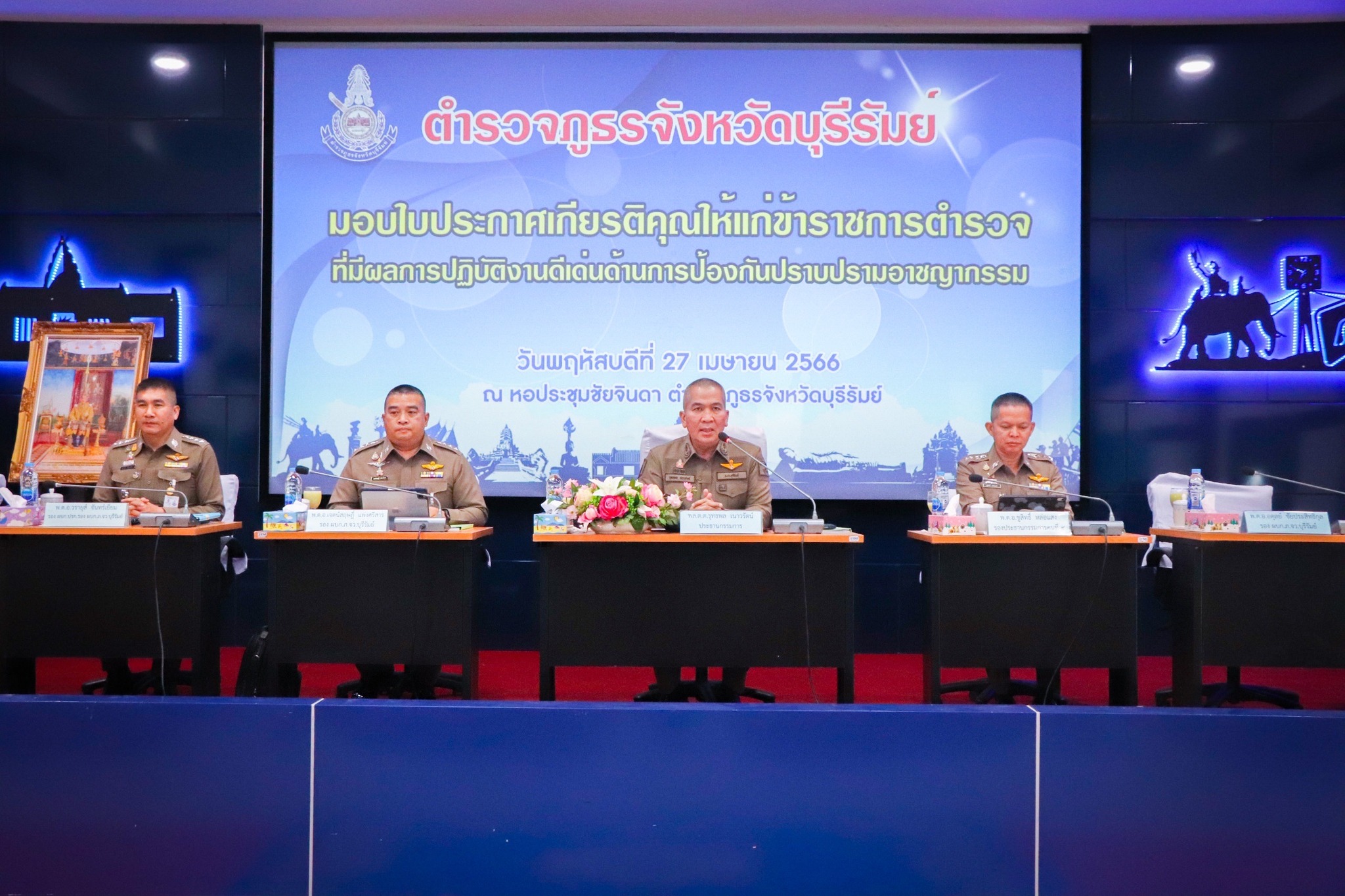 พล.ต.ต.รุทธพล เนาวรัตน์ ผบก.ภ.จว.บุรีรัมย์ มอบใบประกาศเกียรติคุณให้แก่ข้าราชการตำรวจที่มีผลการปฏิบัต