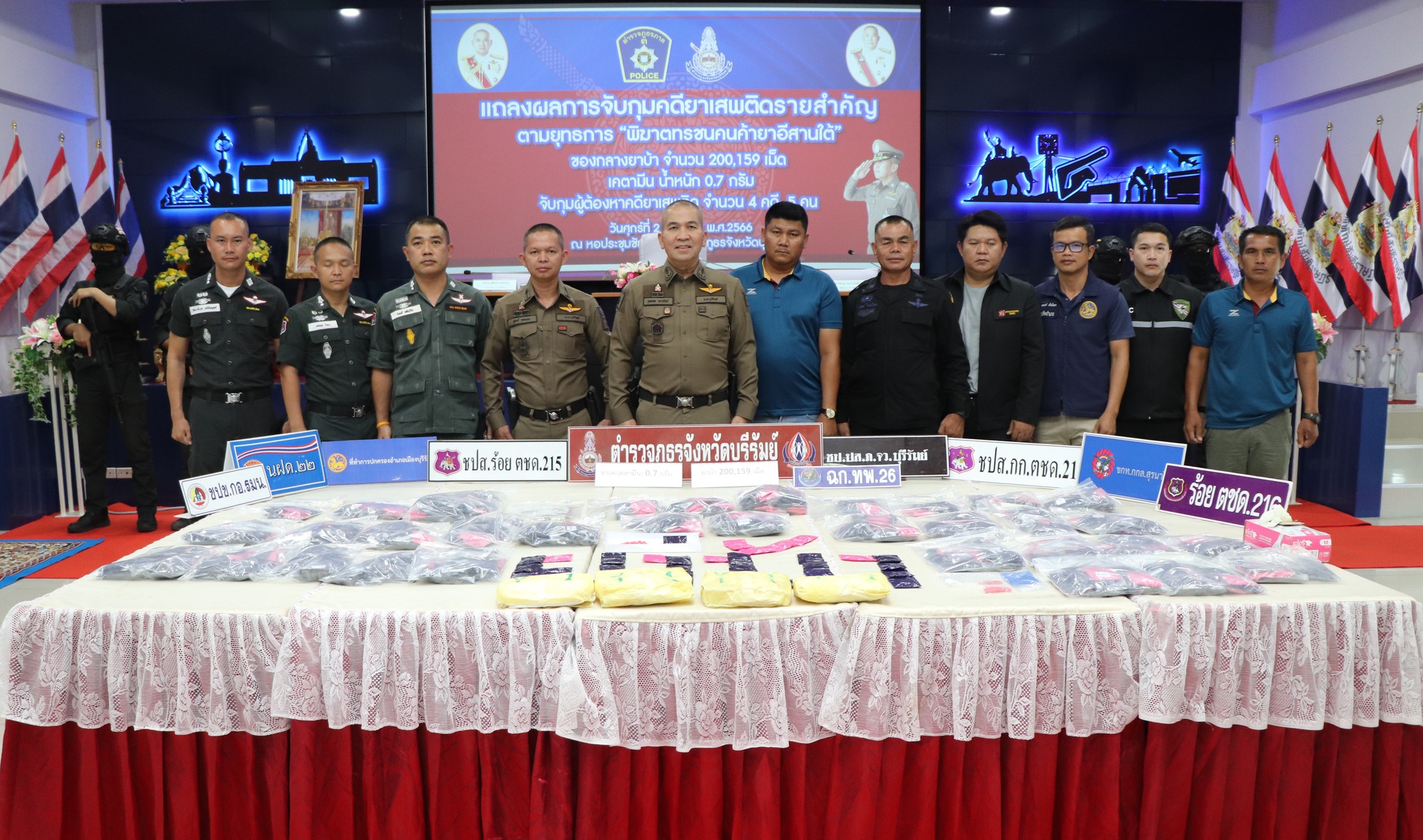 แถลงผลการจับกุมคดียาเสพติด ตามยุทธการ “พิฆาตทรชนคนค้ายาอีสานใต้” ทำลายเครือข่าย จำนวน 2
