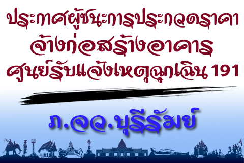 ประกาศผู้ชนะการประกวดราคาจ้างก่อสร้างศูนย์รับแจ้งเหตุฉุกเฉินแห่งชาติ (191) ตำรวจภูธรจังหวัดบุรีรัมย์