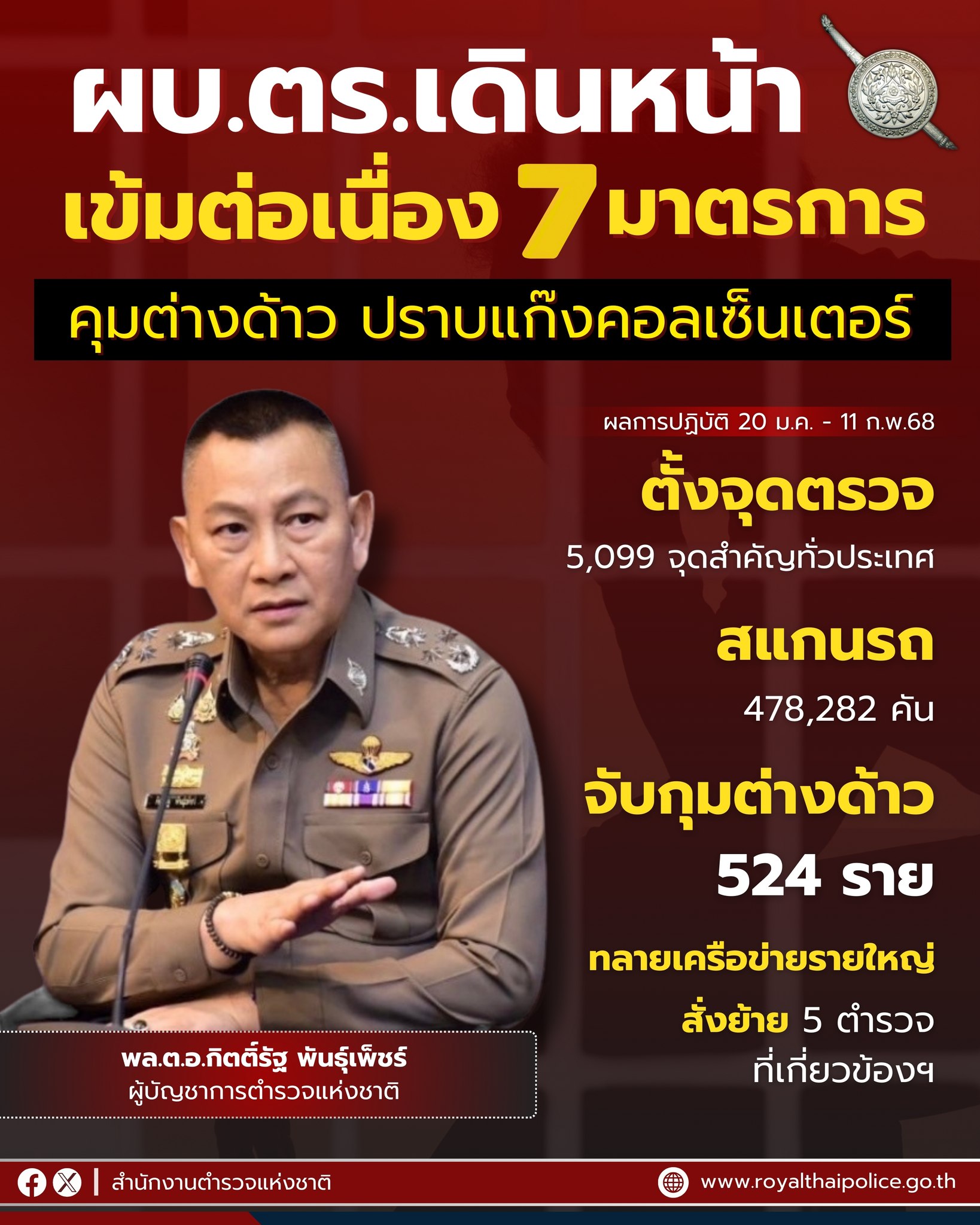 ผบ.ตร. สรุปผลการปฏิบัติ 7 มาตรการเข้มข้น หลังขีดเส้นตาย 7 วัน ปฏิบัติการเชิงรุกตั้งแต่ก่อนเข้าประเทศ