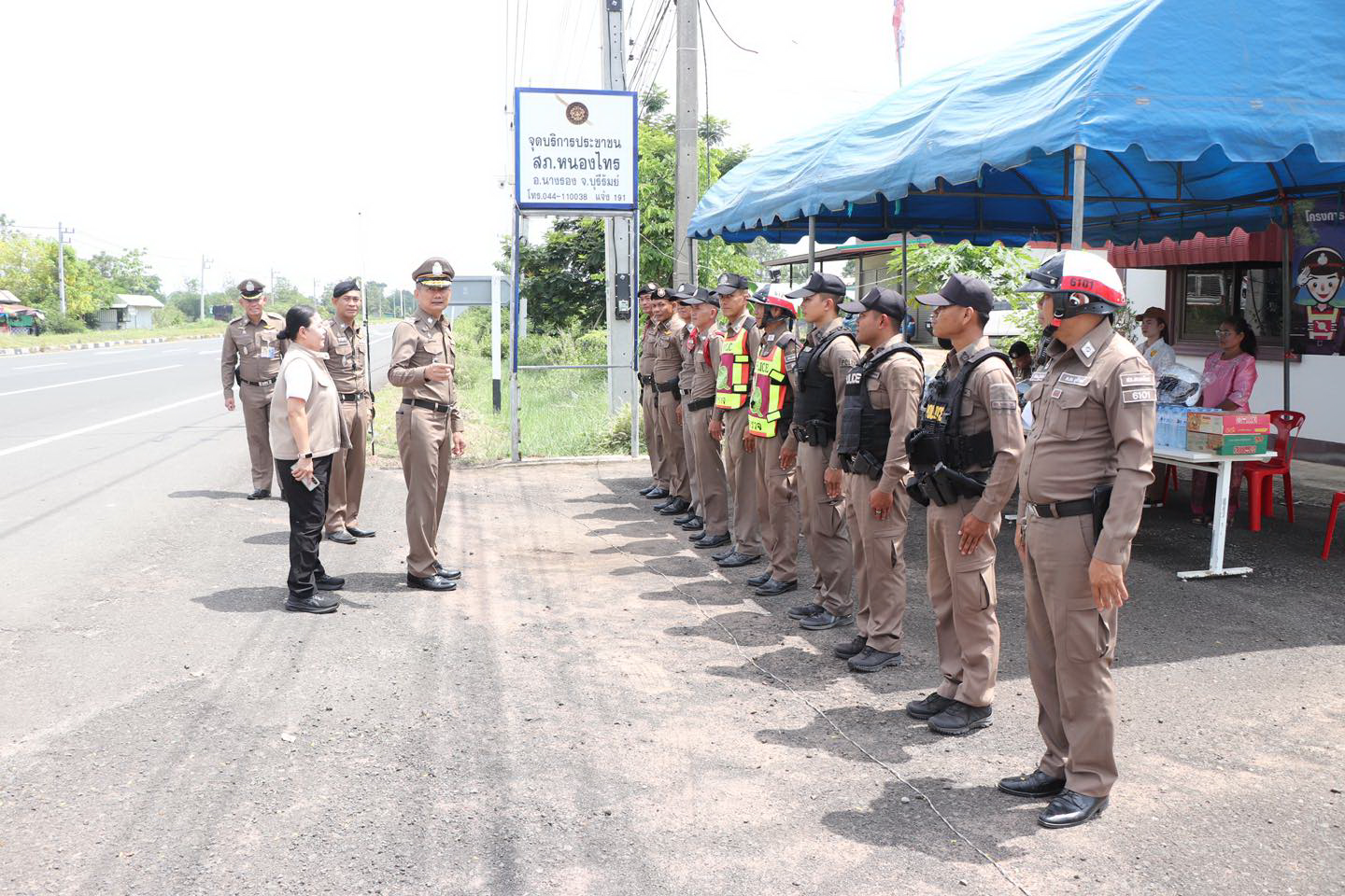 ตรวจเยี่ยมจุดบริการประชาชน บริเวณสี่แยกประโคนชัย สภ.ประโคนชัย และมอบหมวกนิรภัยตามโครงการจิตอาสาพระรา