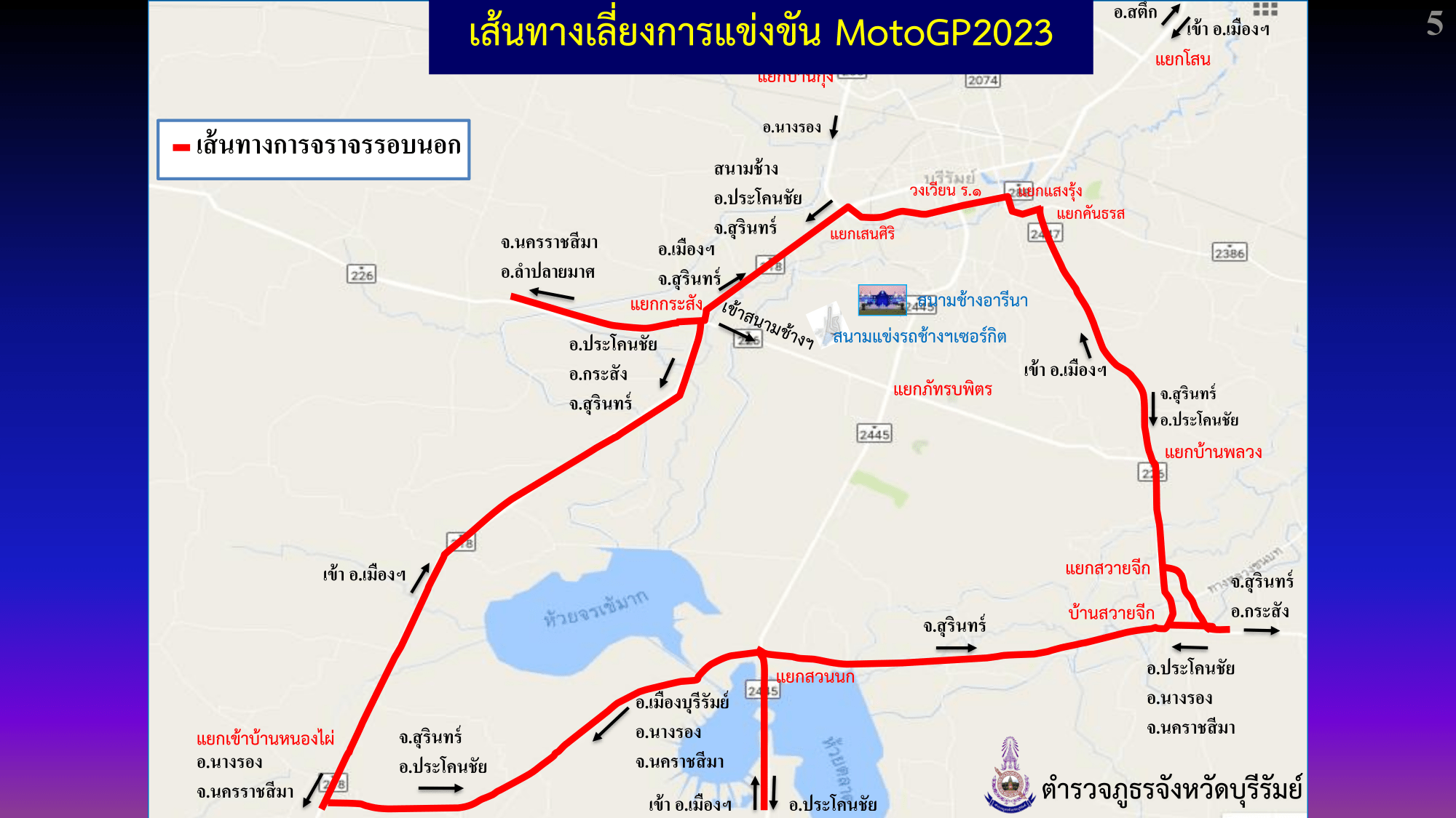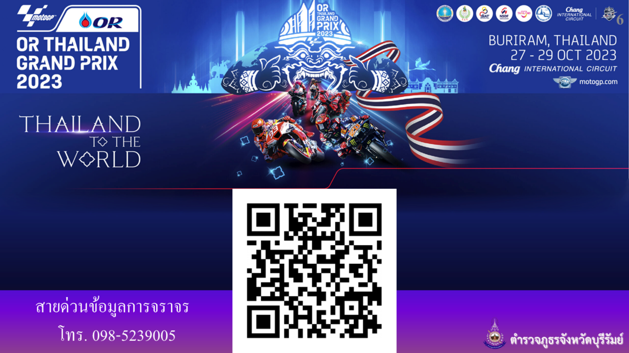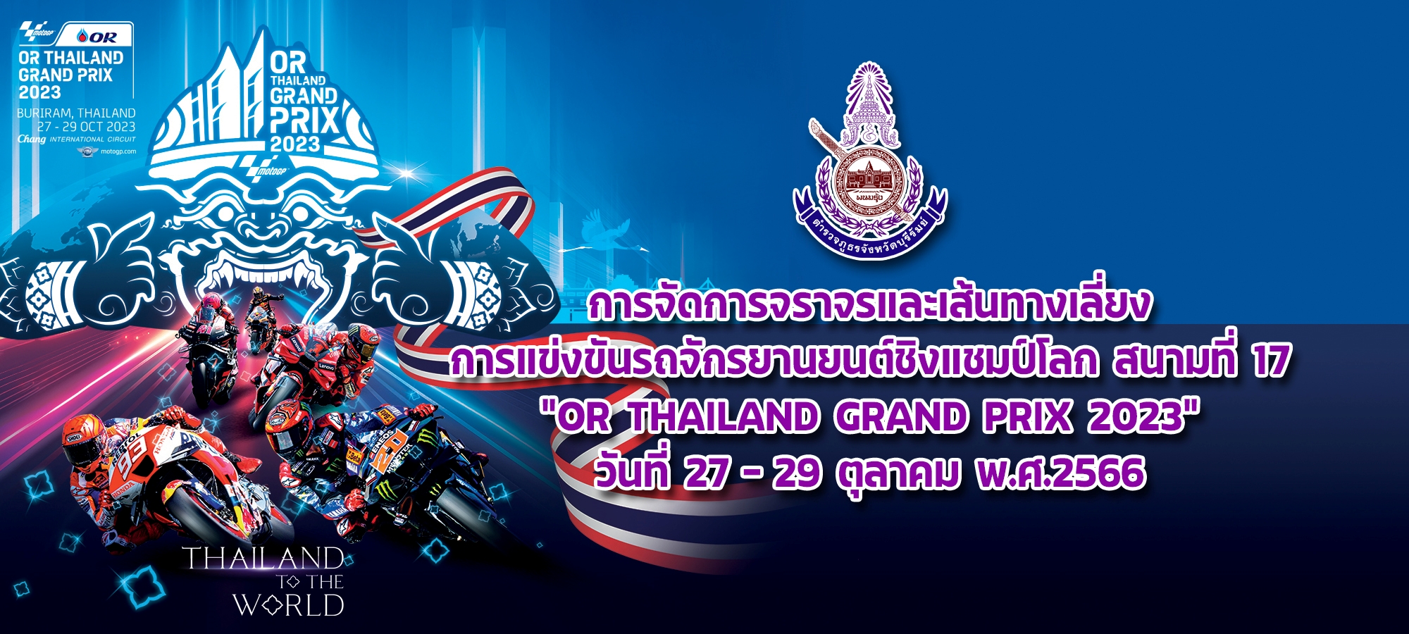 การจัดการจราจรและเส้นทางเลี่ยง การแข่งขันรถจักรยานยนต์ชิงแชมป์โลก สนามที่ 17 “OR THAILAND GRAND PRIX 2023” วันที่ 27 – 29 ตุลาคม พ.ศ.2566