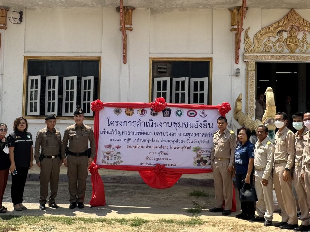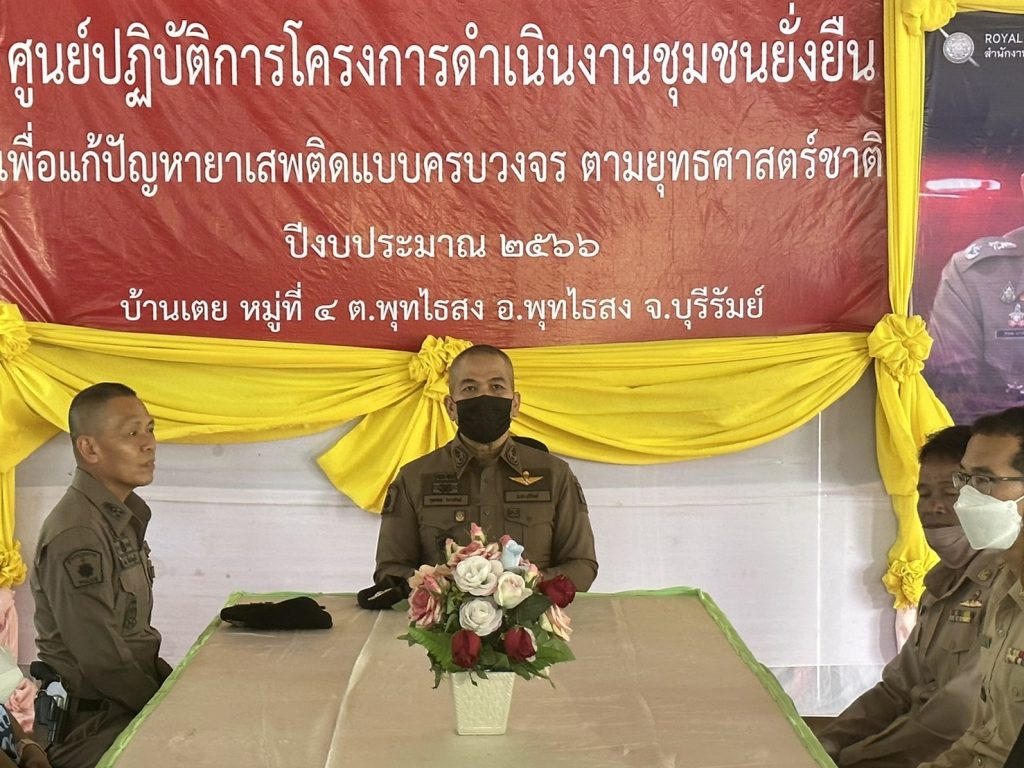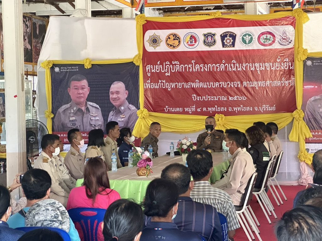 วันที่ 5 เมษายน 2566 เวลา 13.20 น. พล.ต.ต.รุทธพล เนาวรัตน์ ผบก.ภ.จว.บุรีรัมย์ เป็นประธานเปิดโครงการชุมชนยั่งยืนเพื่อแก้ไขปัญหายาเสพติดแบบครบวงจรตามยุทธศาสตร์ชาติ ของ สภ.พุทไธสง และได้พบปะชาวบ้านในชุมชน สอบถามปัญหาต่างๆ พร้อมแนะนำให้ประชาชนมีส่วนร่วมในการป้องกันปัญหายาเสพติด ณ บ้านเตย หมู่ที่ 4 ต.พุทไธสง อ.พุทไธสง จว.บุรีรัมย์